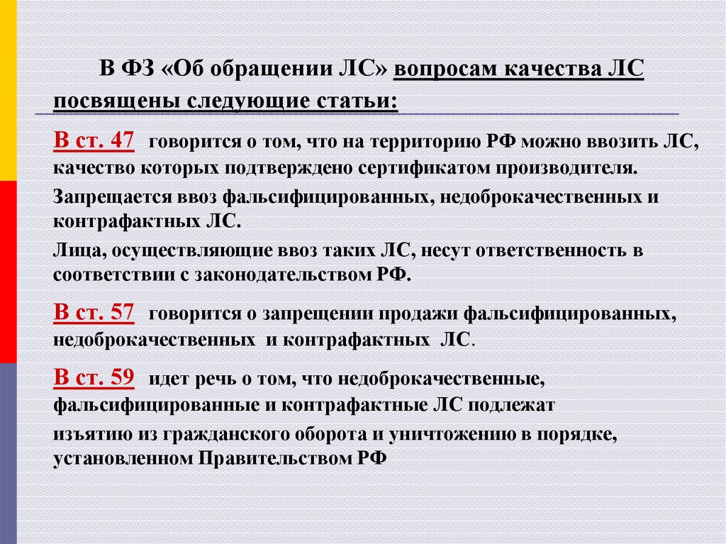 В ст. 47 говорится о том, что на территорию РФ можно ввозить ЛС,