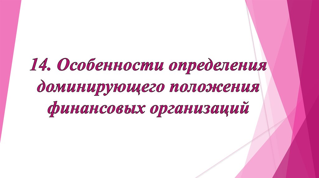 1. 14. Особенности определения доминирующего положения финансовых организаций