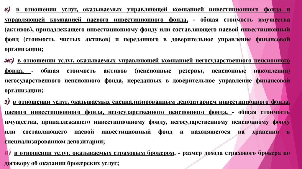 e) Финансовые организации,