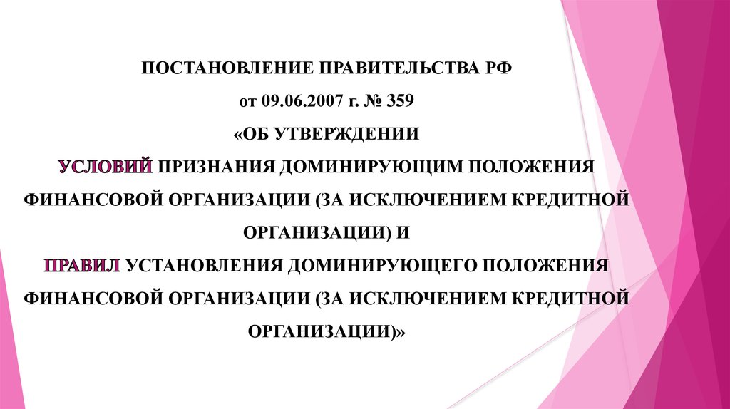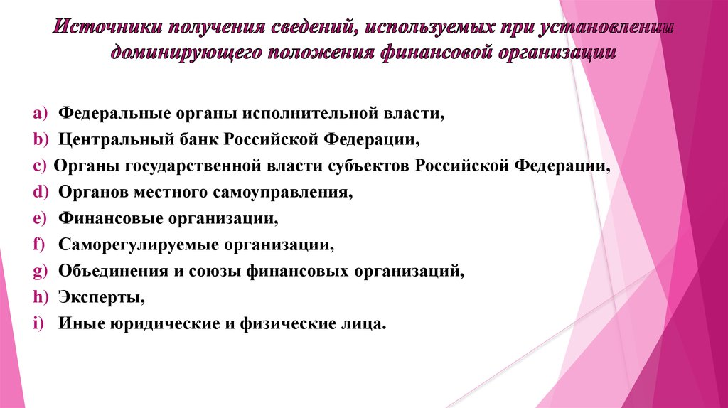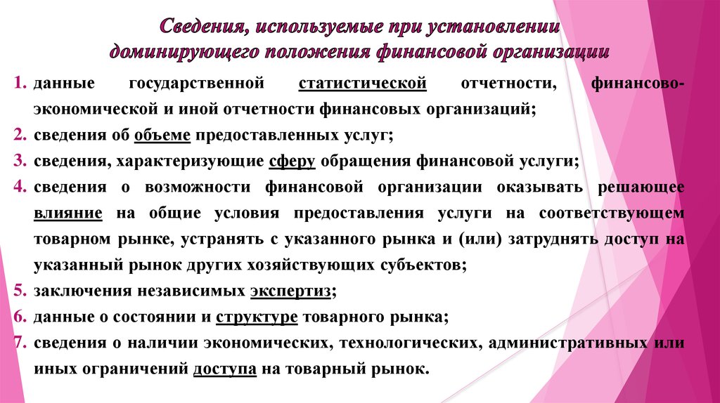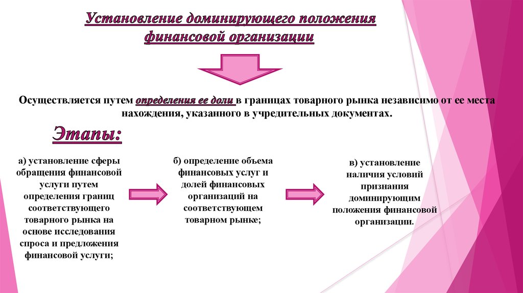 Правила установления доминирующего положенияфинансовой организации