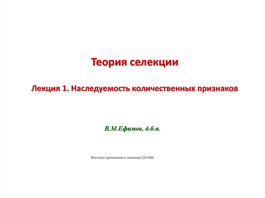 Теория селекцииЛекция 1. Наследуемость количественных признаков