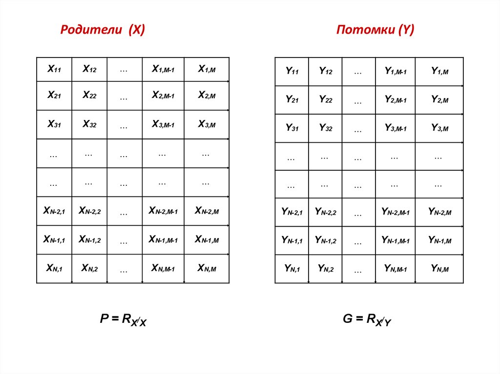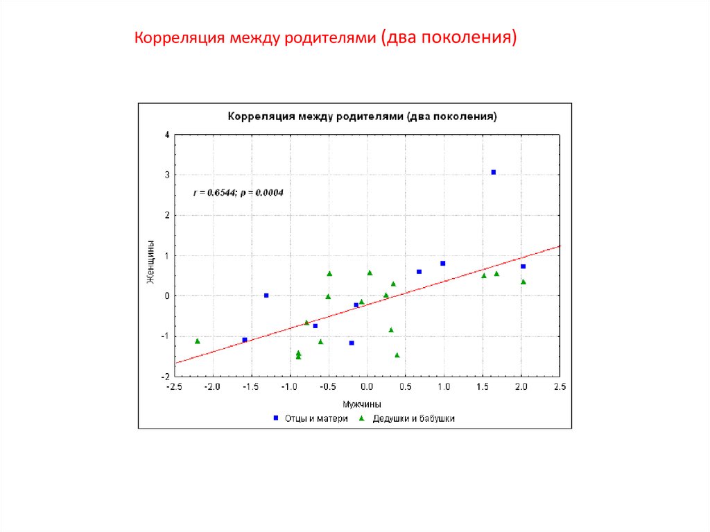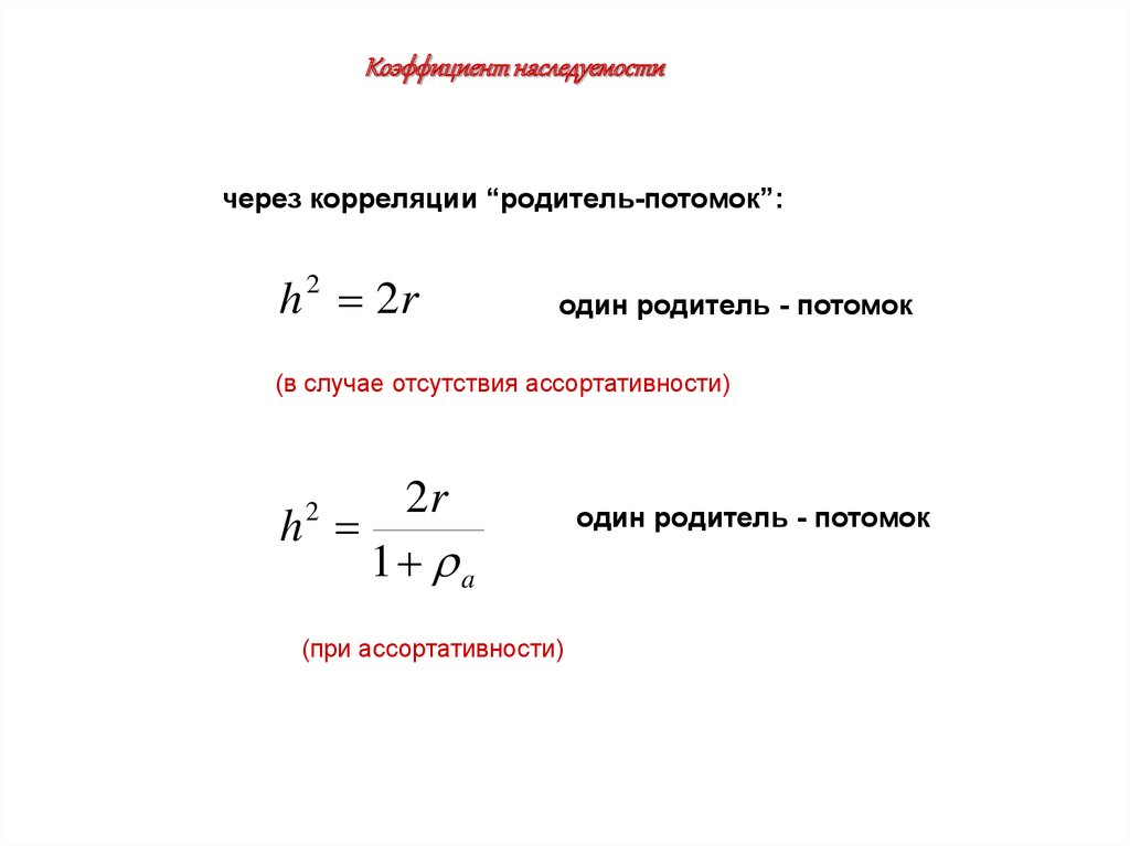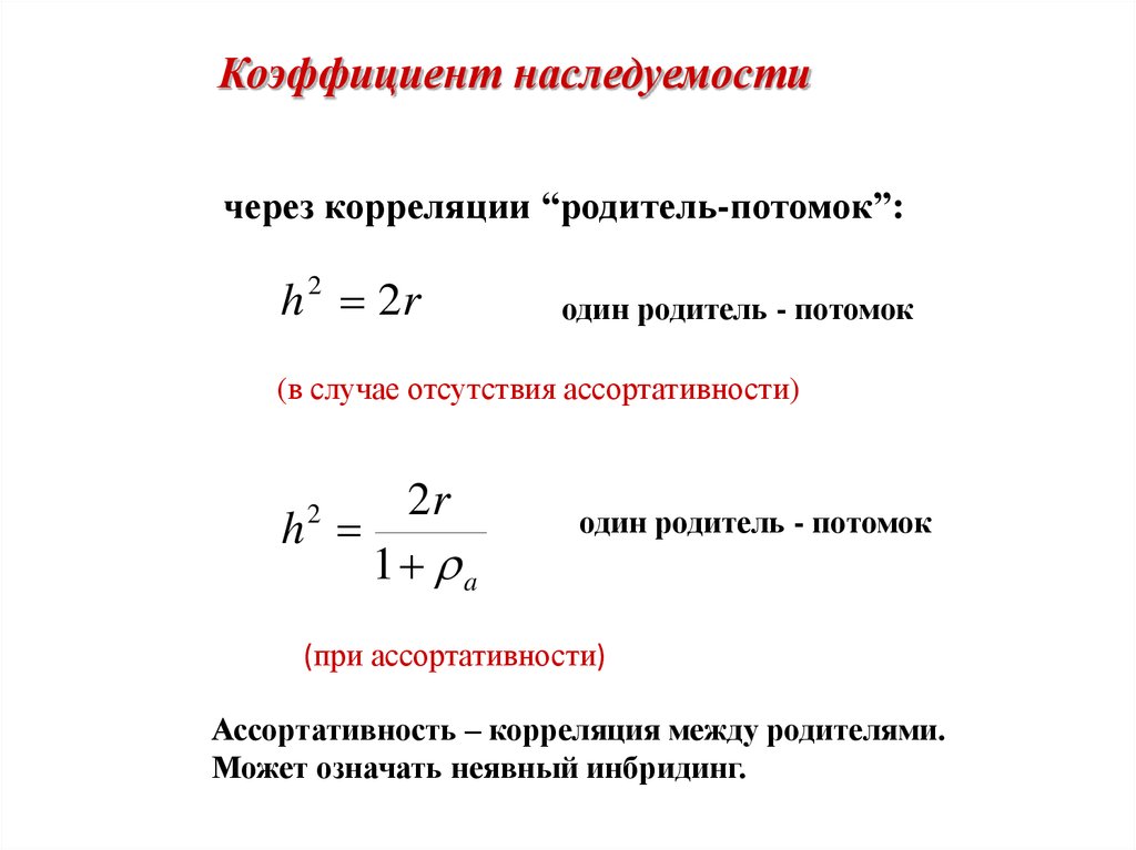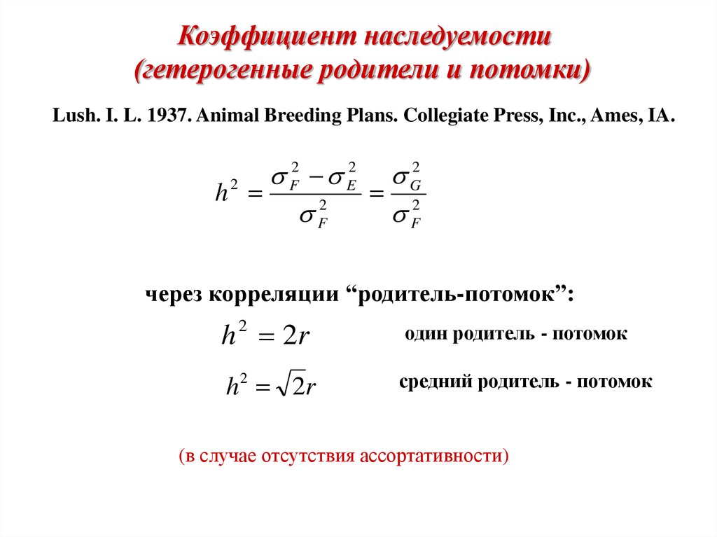 Коэффициент наследуемости(гетерогенные родители и потомки)