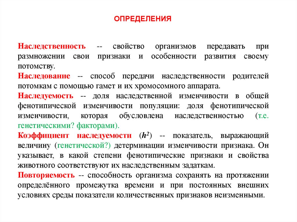 ОПРЕДЕЛЕНИЯНаследственность -- свойство организмов передавать при