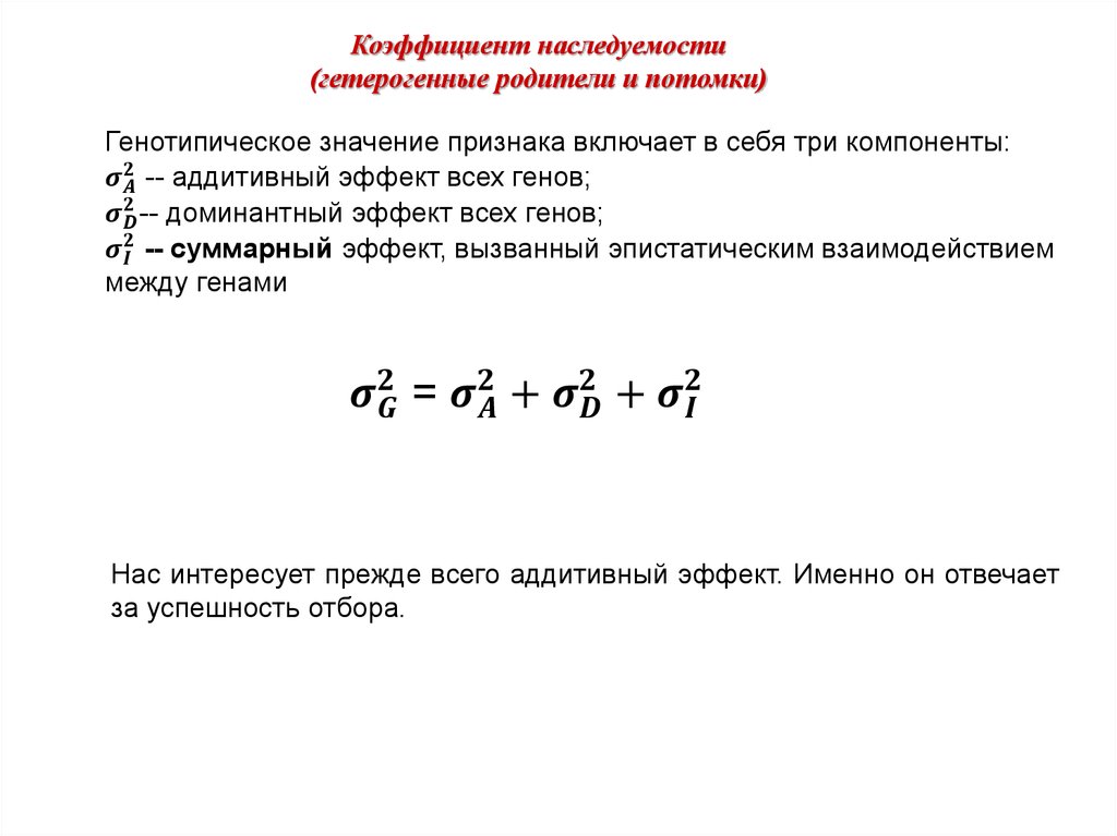 Коэффициент наследуемости (h2) -- показатель, выражающий