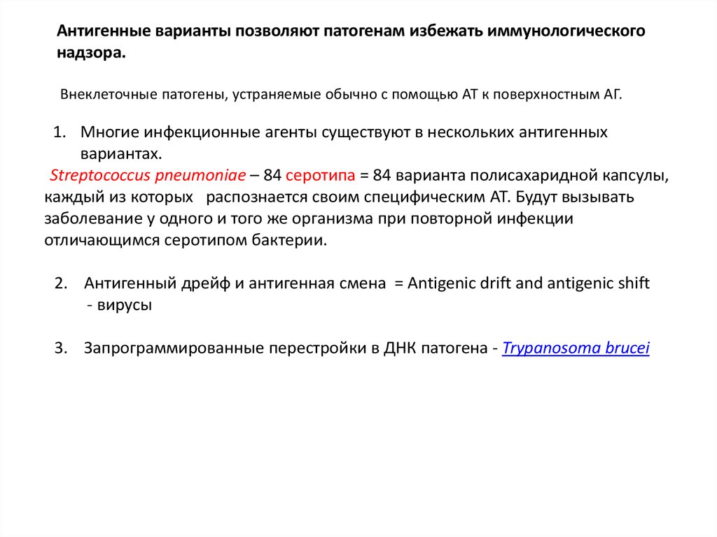 Антигенные варианты позволяют патогенам избежать иммунологическогонадзора.