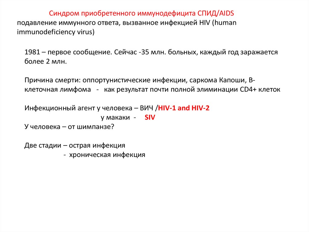 долгого времени. СПИД не развивается, уровень CD4+ клеток нормальный.