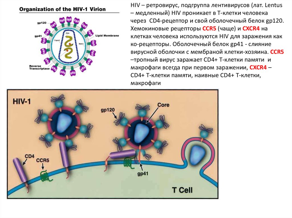 встречают активированные CD4+CCR5+ Tклетки. Помогают в распространении