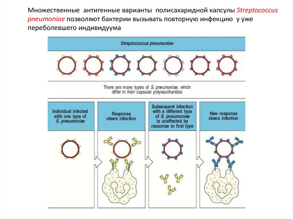 Множественные антигенные варианты полисахаридной капсулы Streptococcuspneumoniae позволяют бактерии вызывать повторную инфекцию у уже