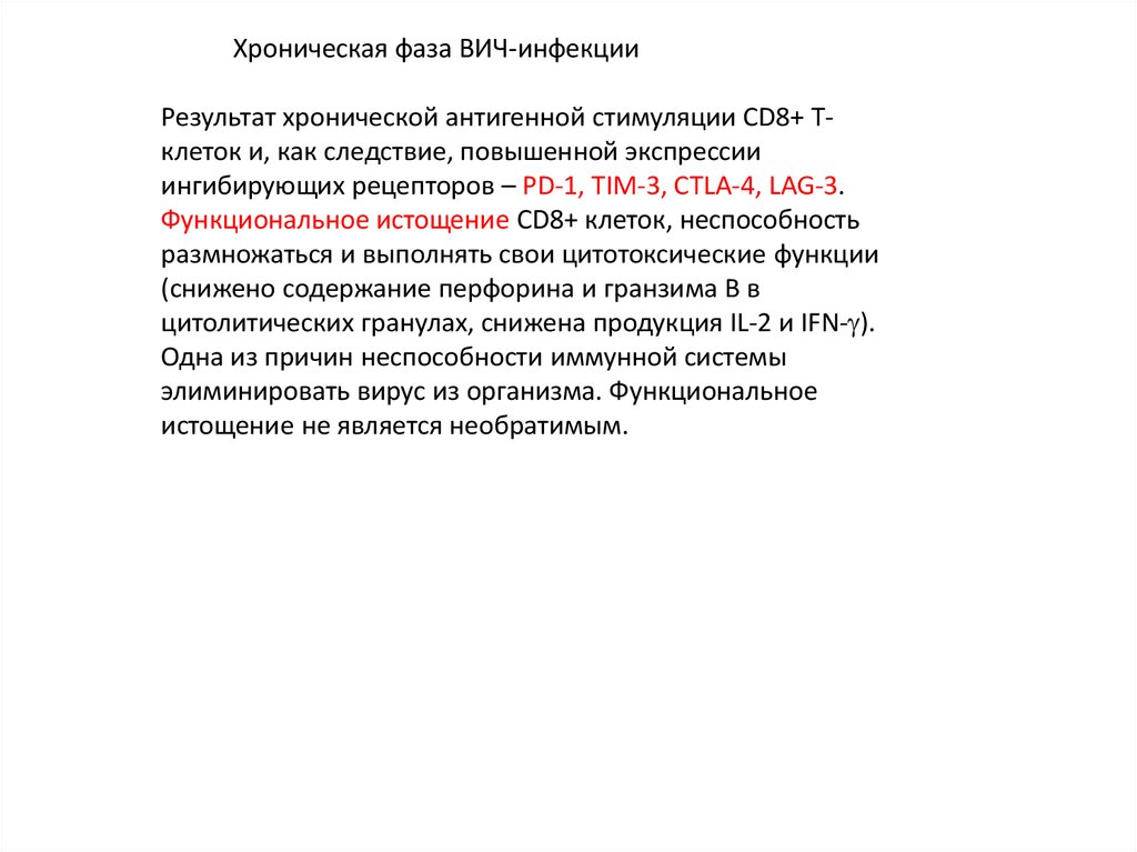 Хроническая фаза ВИЧ-инфекцииРезультат хронической антигенной стимуляции CD8+ Tклеток и, как следствие, повышенной экспрессии