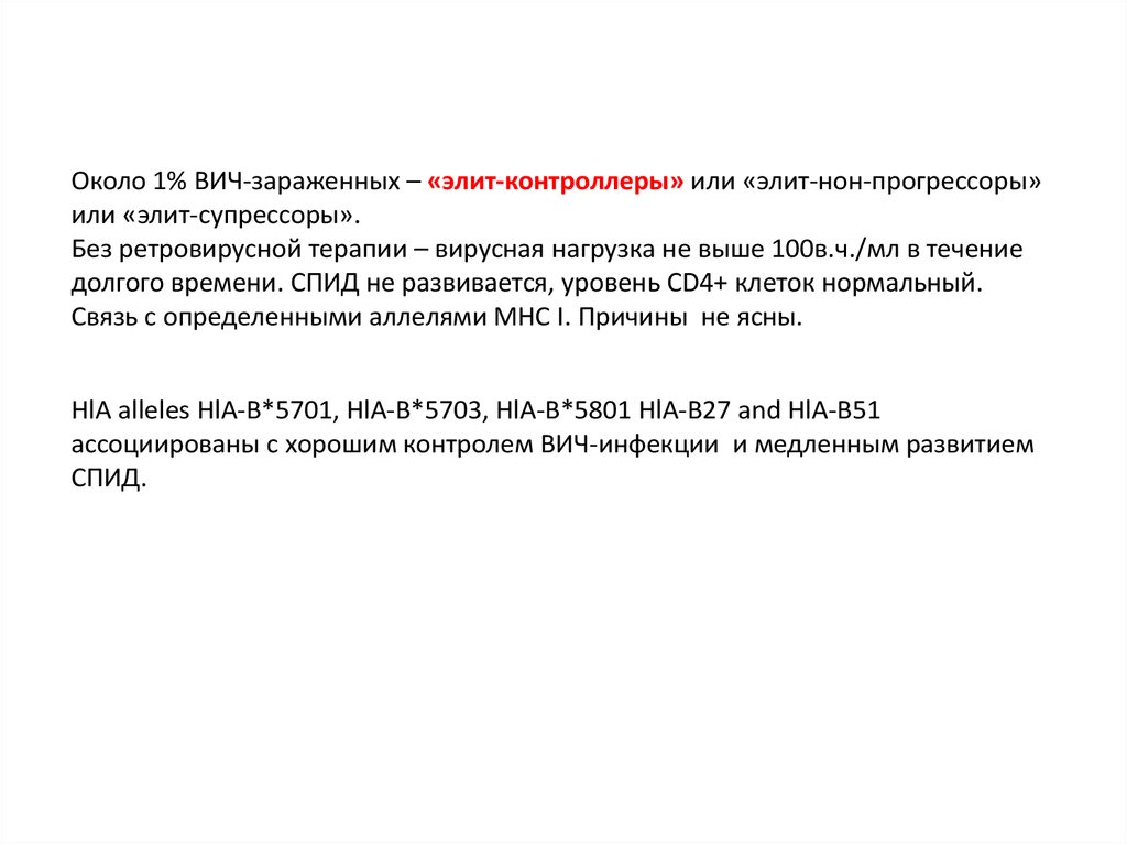 Около 1% ВИЧ-зараженных – «элит-контроллеры» или «элит-нон-прогрессоры»или «элит-супрессоры».