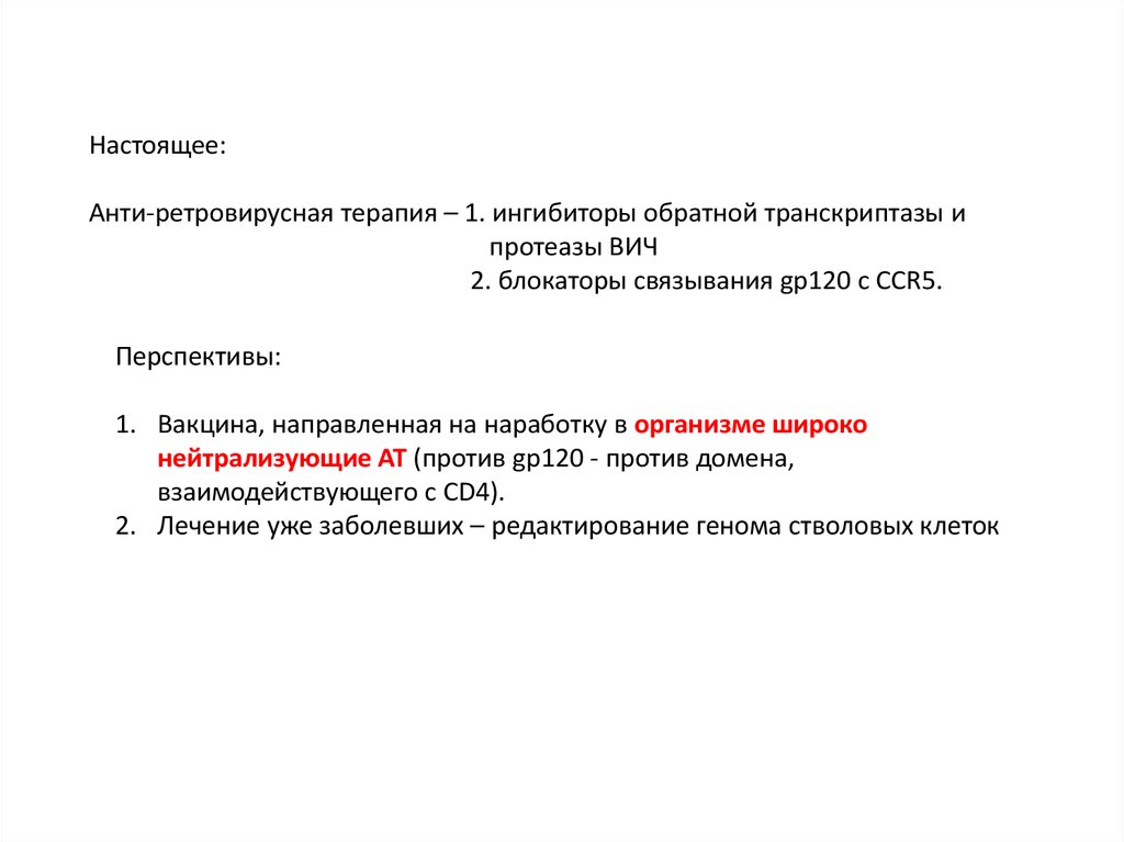 Настоящее:Анти-ретровирусная терапия – 1. ингибиторы обратной транскриптазы и