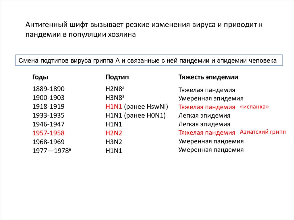 Смена подтипов вируса гриппа А и связанные с ней пандемии и эпидемии человека
