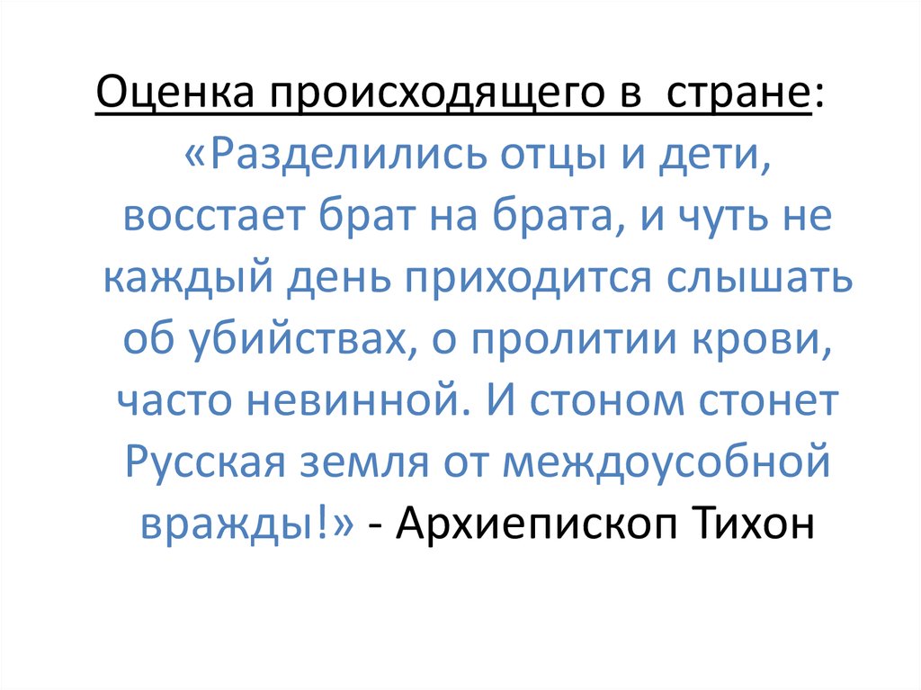 6. Мнение православного люда на Соборе выразил один из депутатов-крестьян: «У нас больше нет царя, нет отца, которого мы любили. Синод любить н