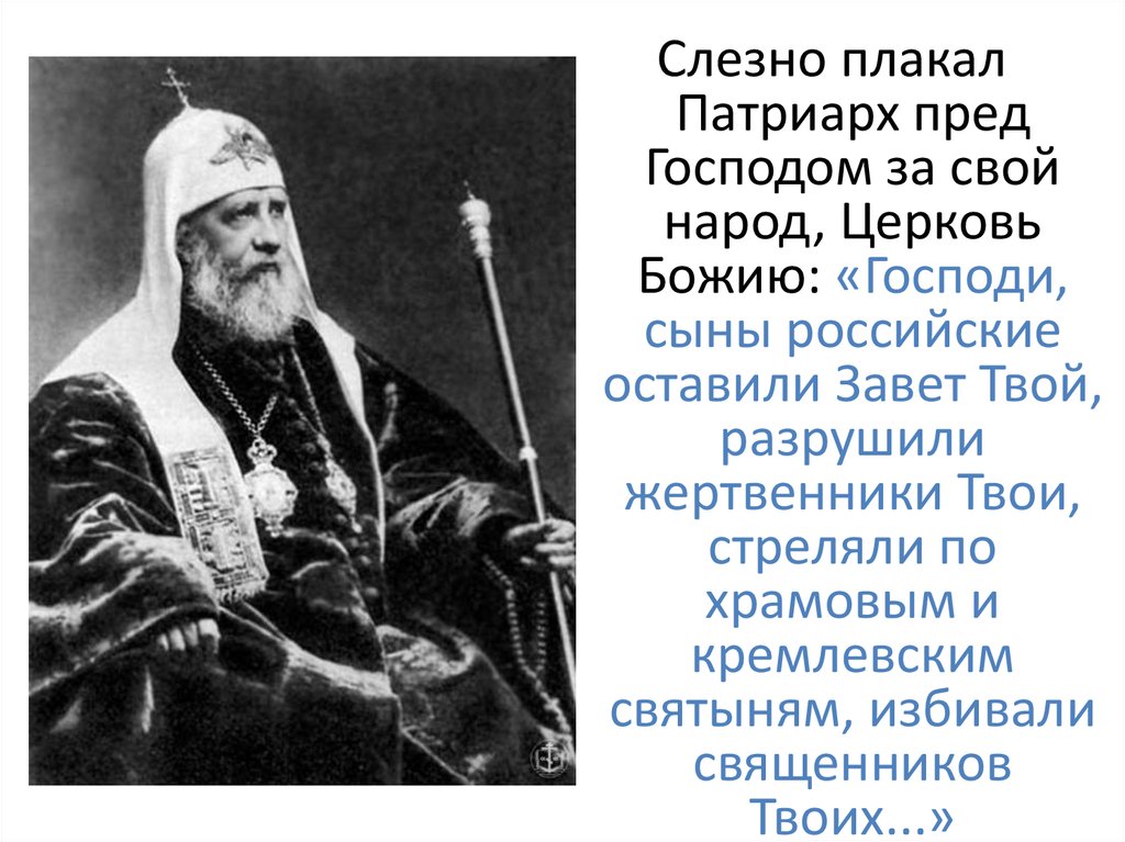 попытка разгрома Церкви, Патриарх