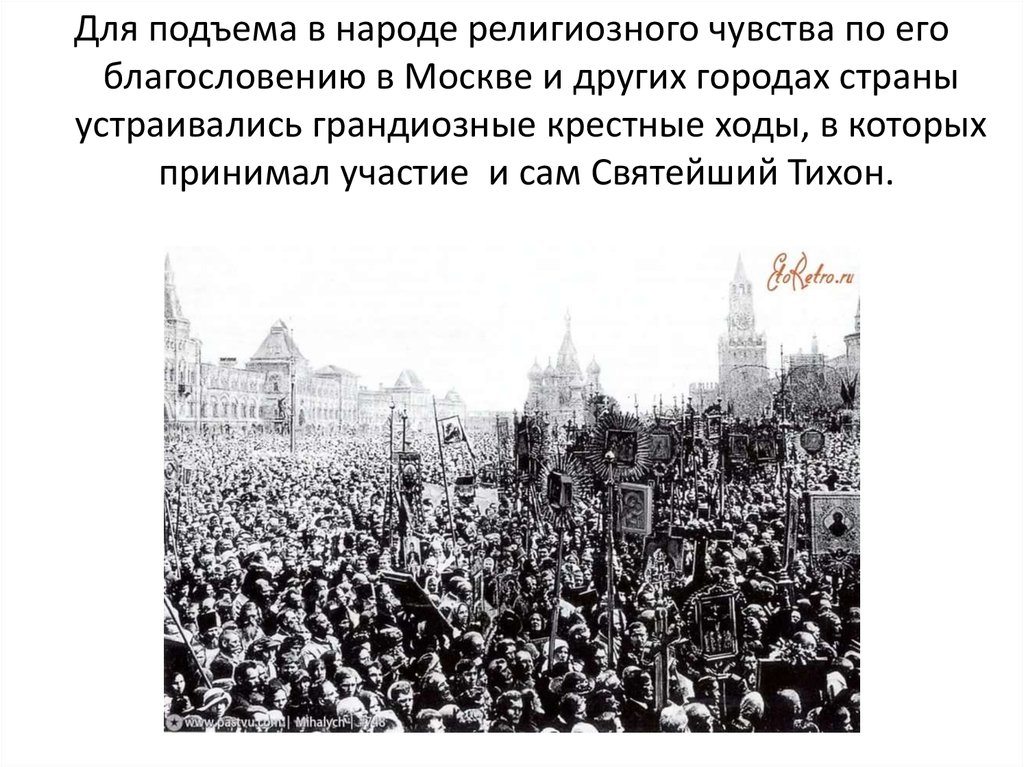 9. 18 ноября 1917 года Патриархом Московским и Всея Руси был избран митрополит Московский Тихон.