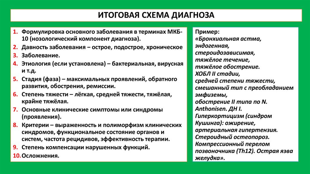 Диагноз (распознавание) – это краткое врачебное заключение об имеющемся заболевании (травме) или о