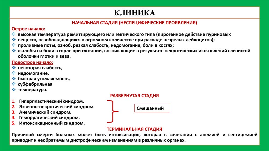 СИМПТОМАТОЛОГИЯ ЛЕЙКОЗОВ.ГЕМОРРАГИЧЕСКИЙ СИНДРОМ.