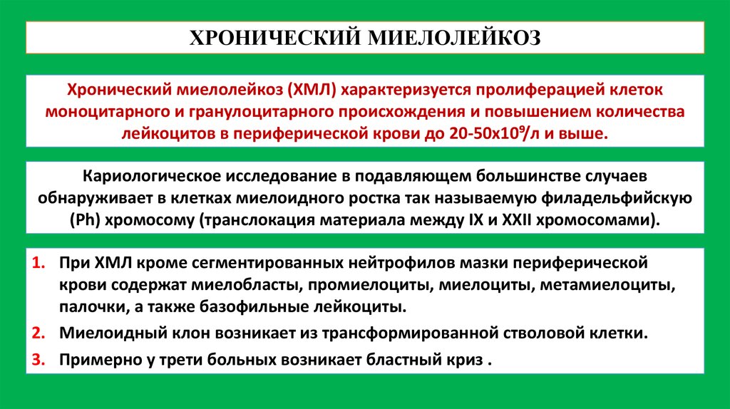 2) наступлением "бластного криза» (смена дифференцированных