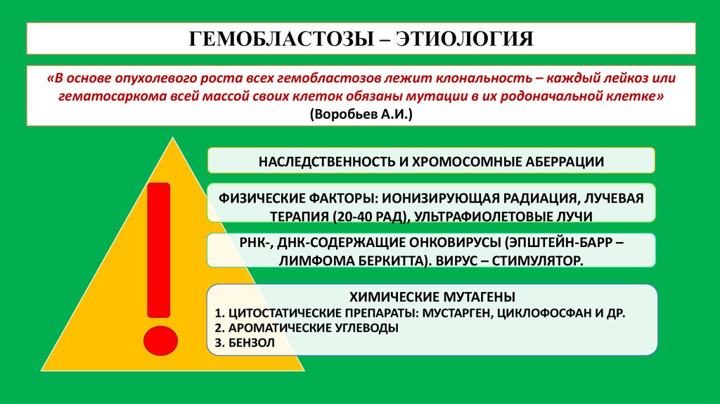 ГЕМОБЛАСТОЗЫ – ЭТИОЛОГИЯ«В основе опухолевого роста всех гемобластозов лежит клональность – каждый лейкоз или