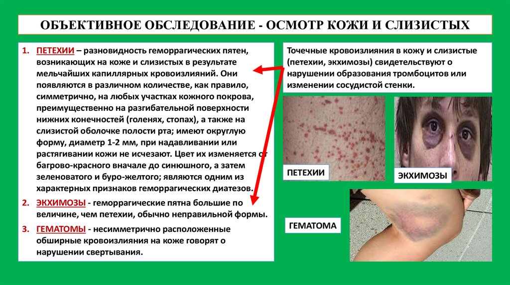 носовой полости. Иногда при легком воздействии возникают неадекватные синяки