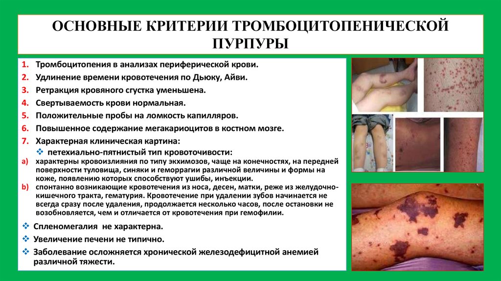 - как правило, геморрагические проявления отсутствуют. Кровотечения могут