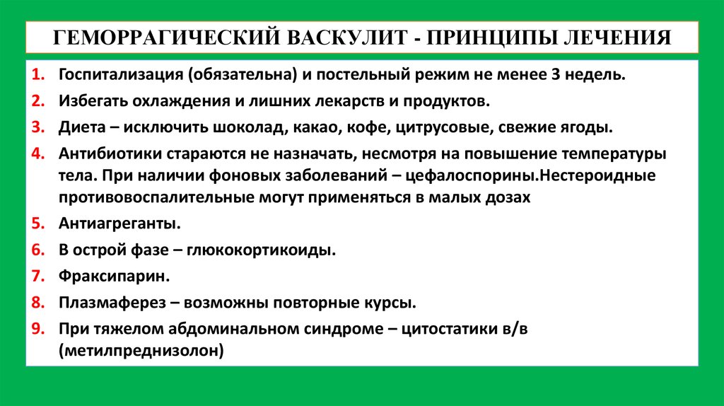 ГЕМОРРАГИЧЕСКИЙ ВАСКУЛИТ - ПРИНЦИПЫ ЛЕЧЕНИЯ1.