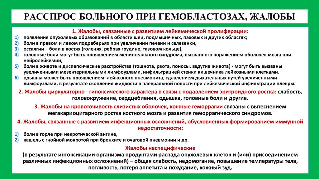 Гемобластозы — злокачественные заболевания системы крови, характеризующиеся следующими