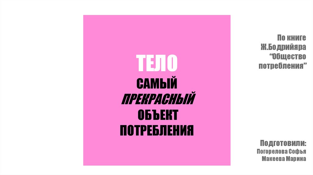 1. ТЕЛО САМЫЙ ПРЕКРАСНЫЙ ОБЪЕКТ ПОТРЕБЛЕНИЯ