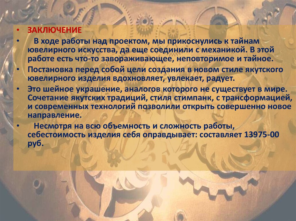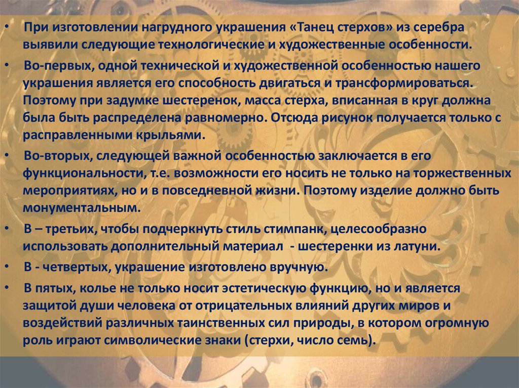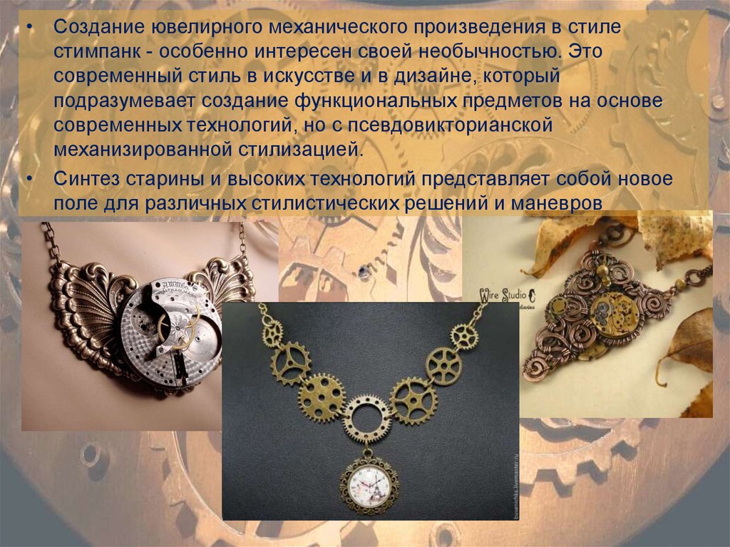 • Создание ювелирного механического произведения в стилестимпанк - особенно интересен своей необычностью. Это