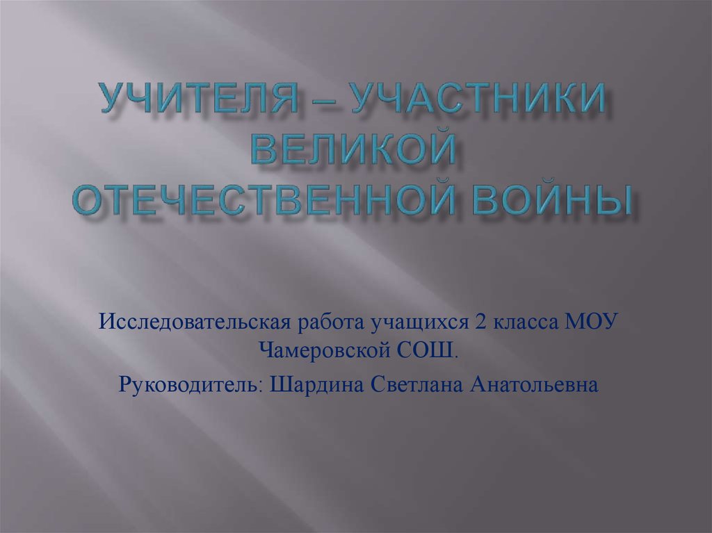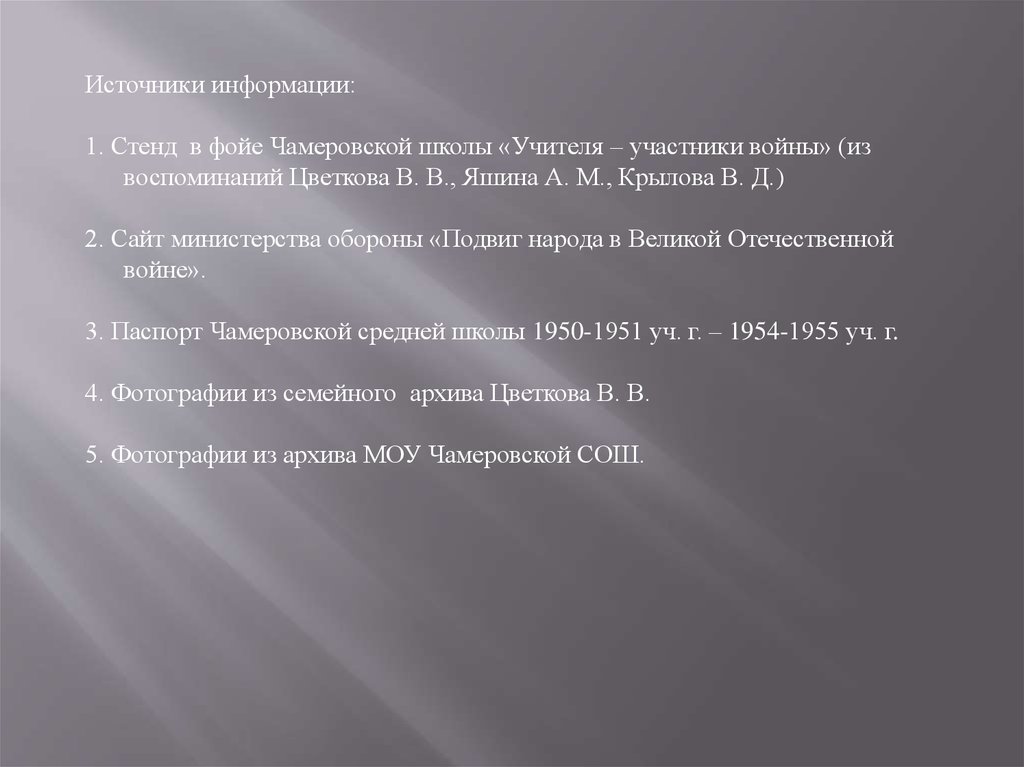 Источники информации:1. Стенд в фойе Чамеровской школы «Учителя – участники войны» (из