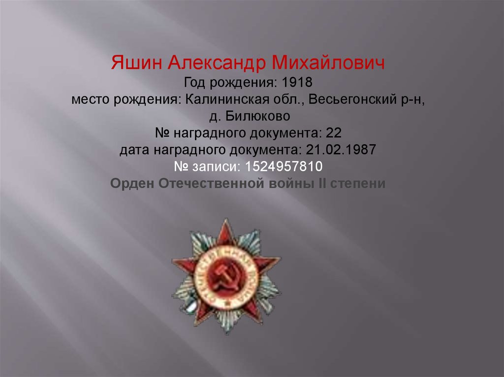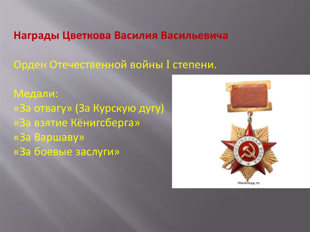 Награды Цветкова Василия ВасильевичаОрден Отечественной войны I степени.