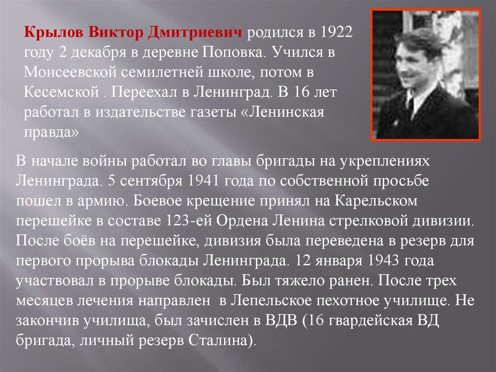 Крылов Виктор ДмитриевичГод рождения: 1922