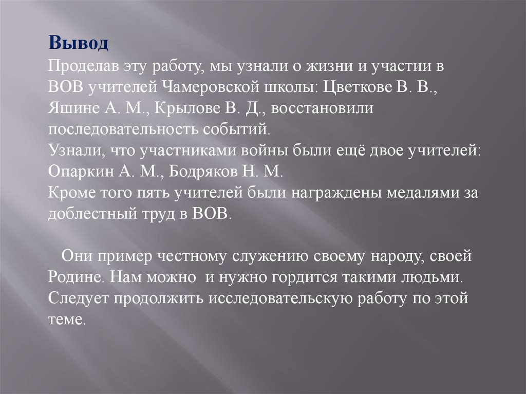 ВыводПроделав эту работу, мы узнали о жизни и участии в