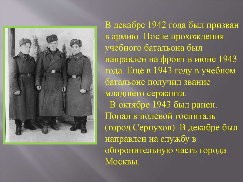 в РККА с 11.1942 года Место призыва: Овинищенский РВК