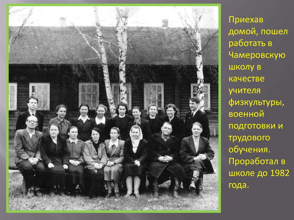 Чамеровской школе воспитателем в интернате. В 1978 году вышел