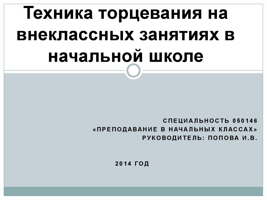 СПЕЦИАЛЬНОСТЬ 050146« П Р Е П О Д А В А Н И Е В Н АЧ А Л Ь Н Ы Х К Л А С С А Х »