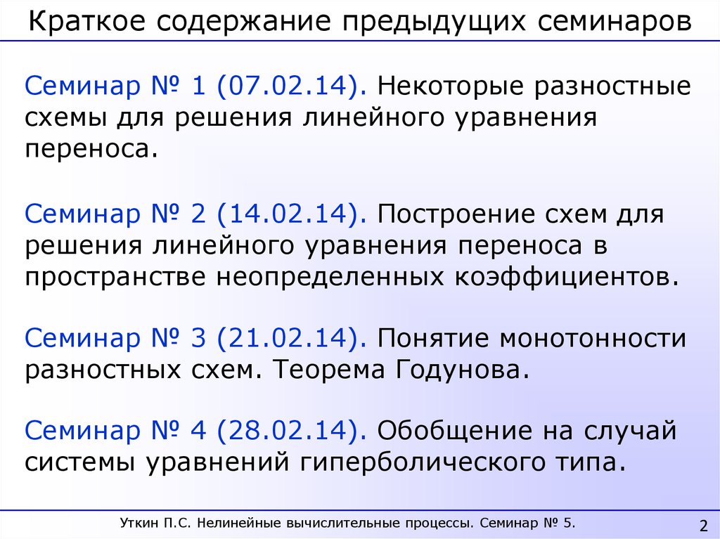 Краткое содержание предыдущих семинаровСеминар № 1 (07.02.14). Некоторые разностные