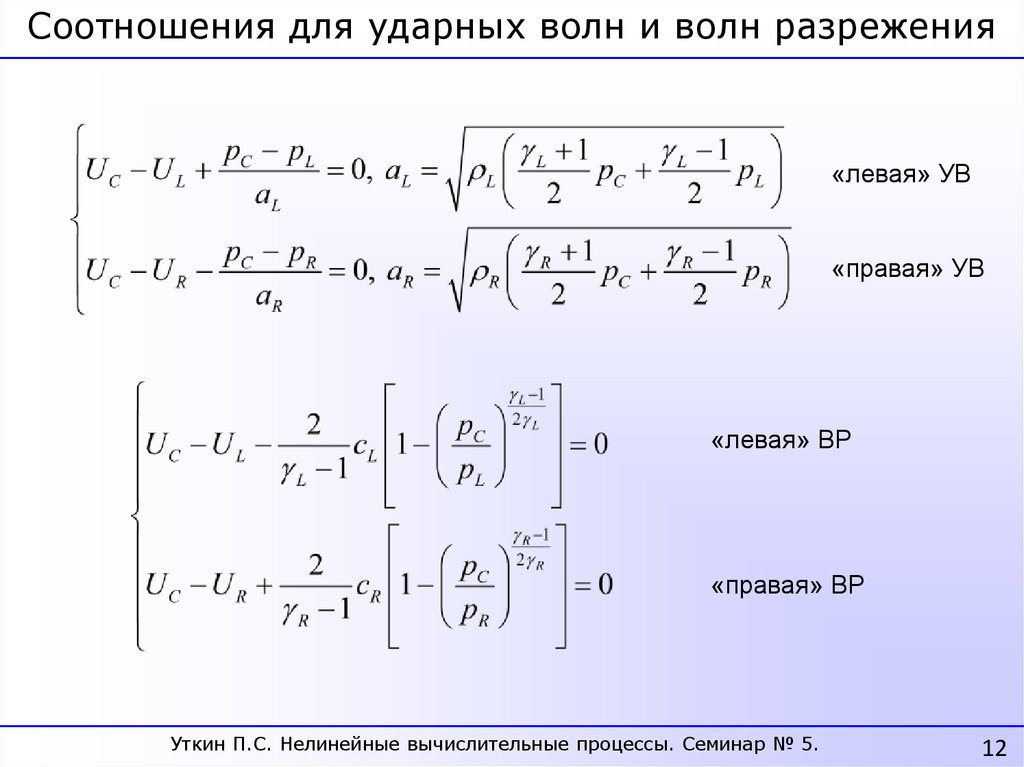 Соотношения на разрывеСоотношения Ренкина – Гюгонио: