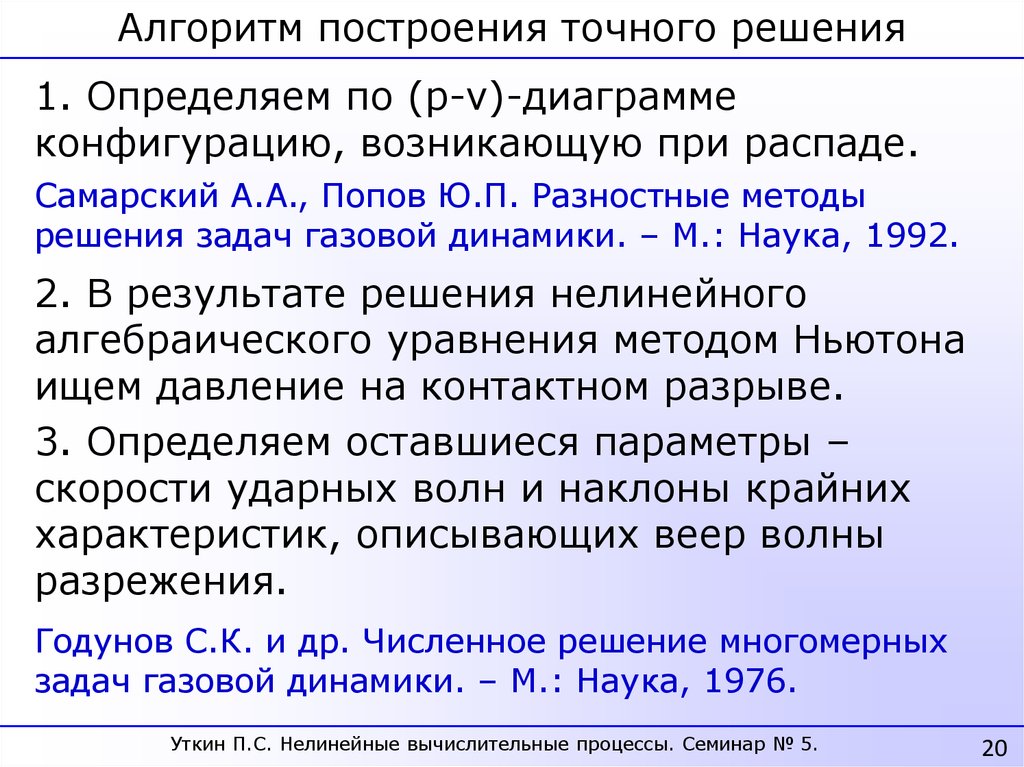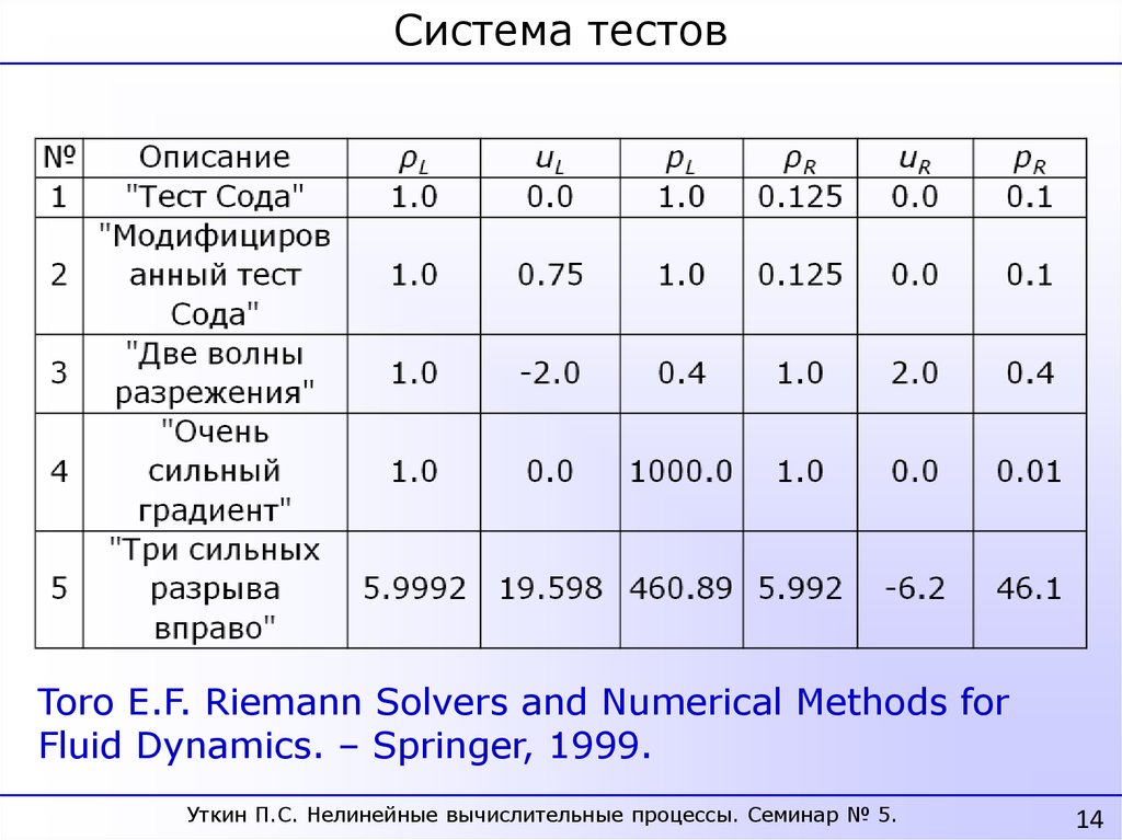 Toro E.F. Riemann Solvers and Numerical Methods for Fluid Dynamics. – Springer, 1999.