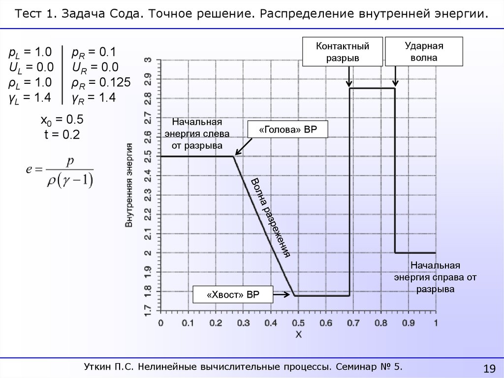 Тест 1. Задача Сода. Точное решение. Распределение внутренней энергии.pL = 1.0