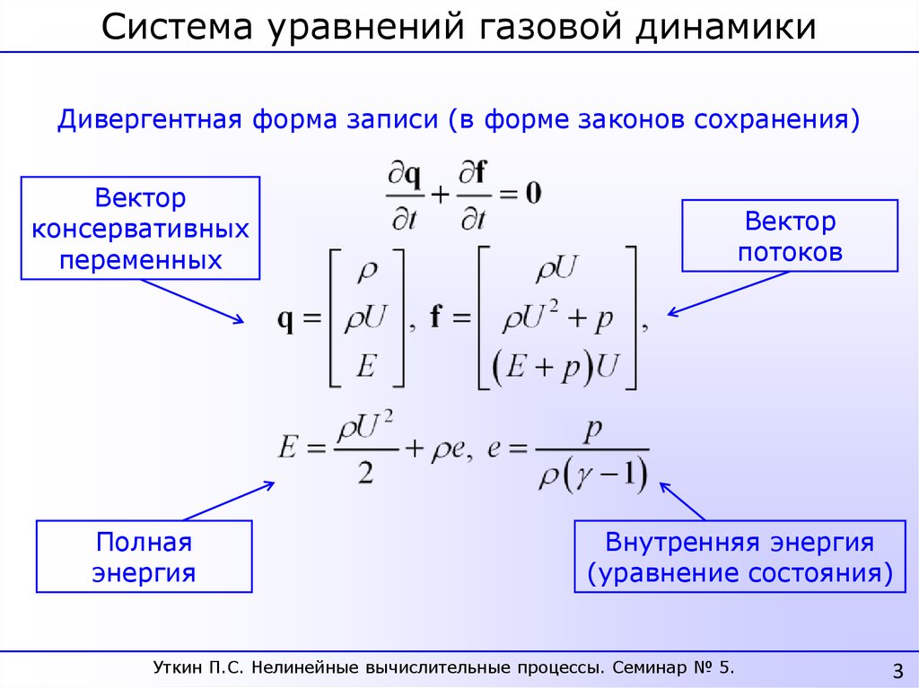 Система уравнений газовой динамикиДивергентная форма записи (в форме законов сохранения)