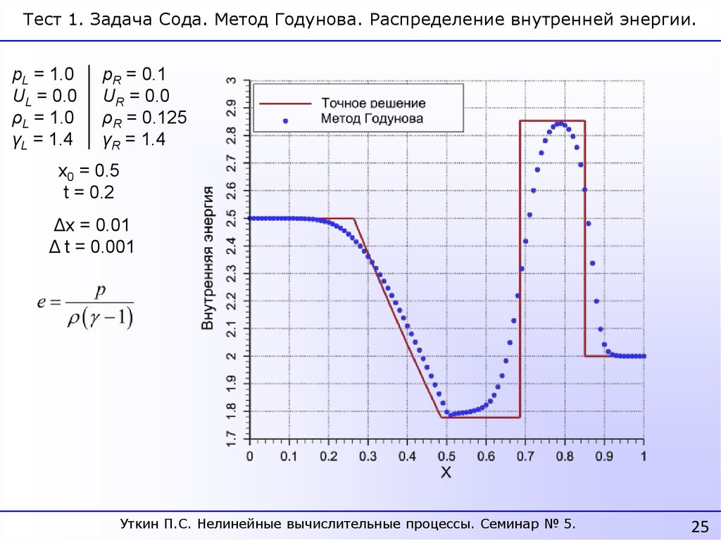 Тест 1. Задача Сода. Метод Годунова. Распределение внутренней энергии.pL = 1.0