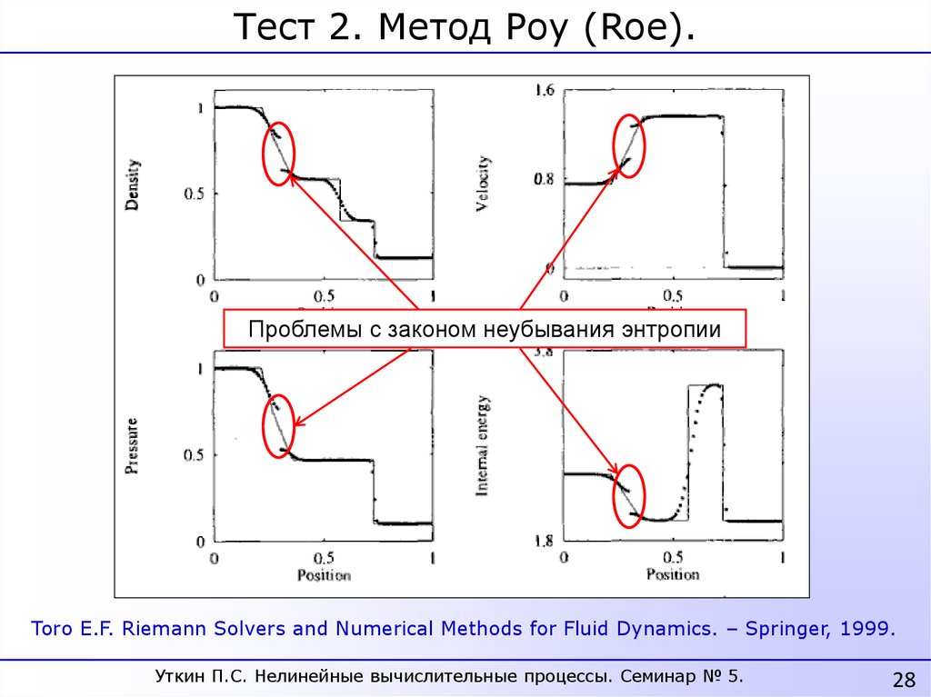 Тест 2. Метод Роу (Roe).Проблемы с законом неубывания энтропии