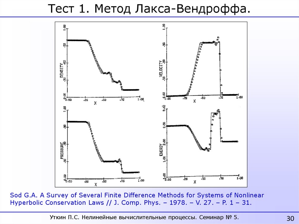 Тест 1. Метод Лакса-Вендроффа.Sod G.A. A Survey of Several Finite Difference Methods for Systems of Nonlinear