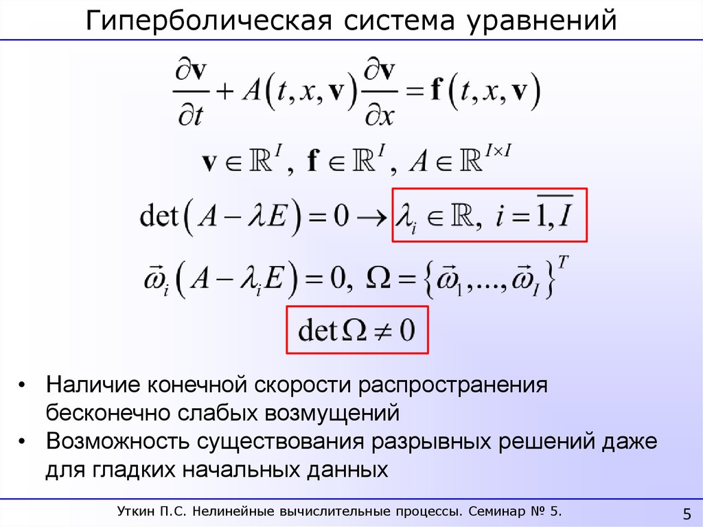 Гиперболическая система уравнений• Наличие конечной скорости распространения