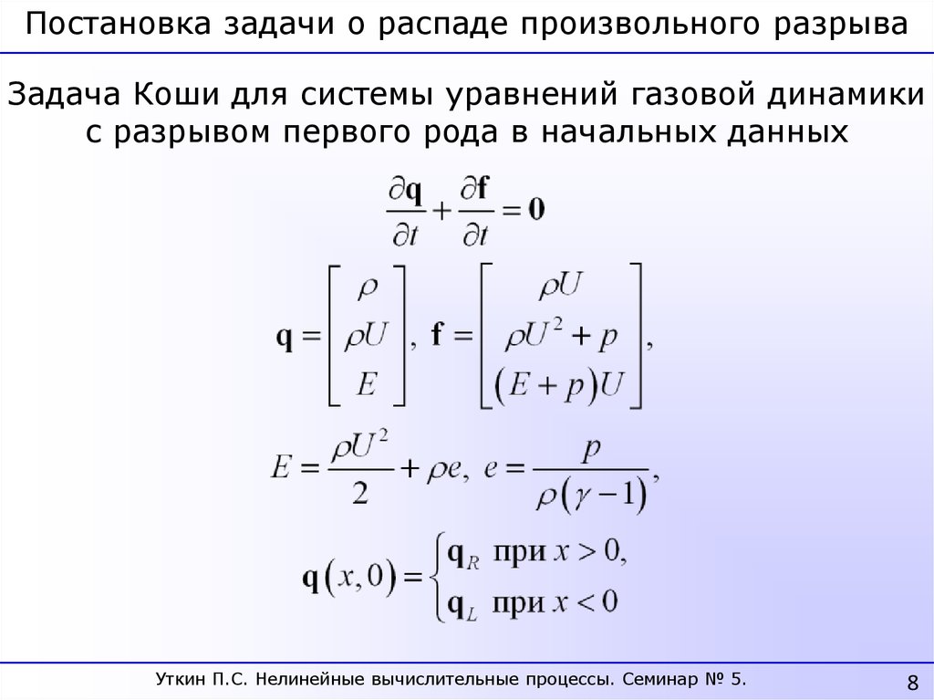 Постановка задачи о распаде произвольного разрываЗадача Коши для системы уравнений газовой динамики