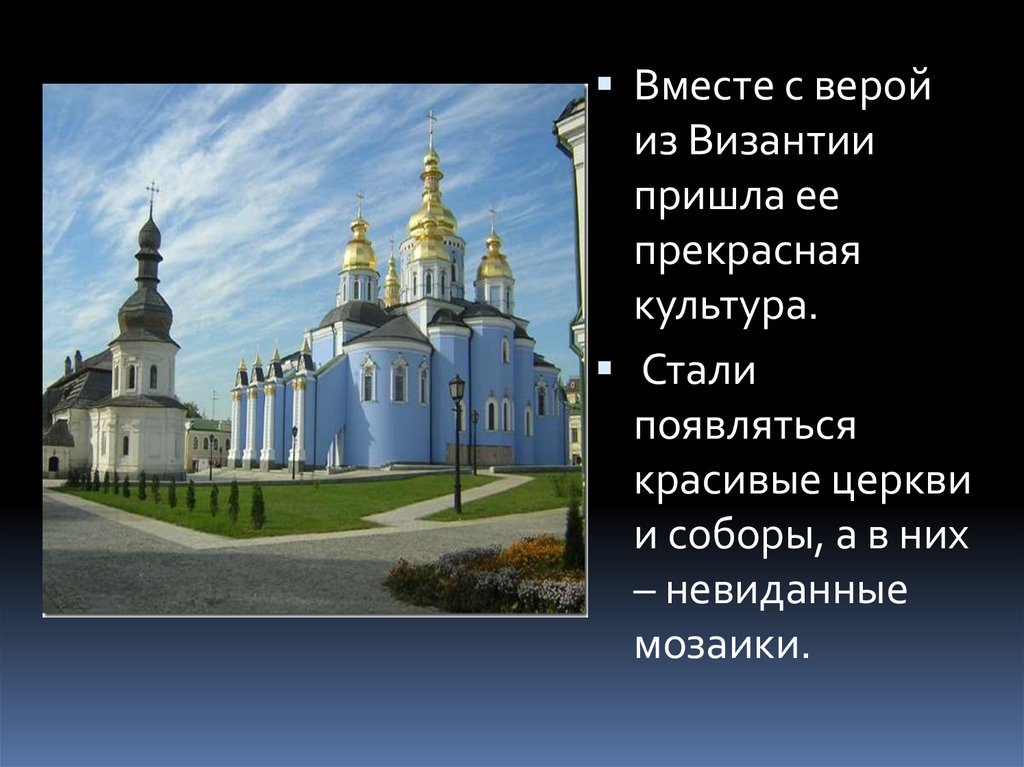 Князь Владимир пригласил греческихмастеров и построил в Киеве церковь