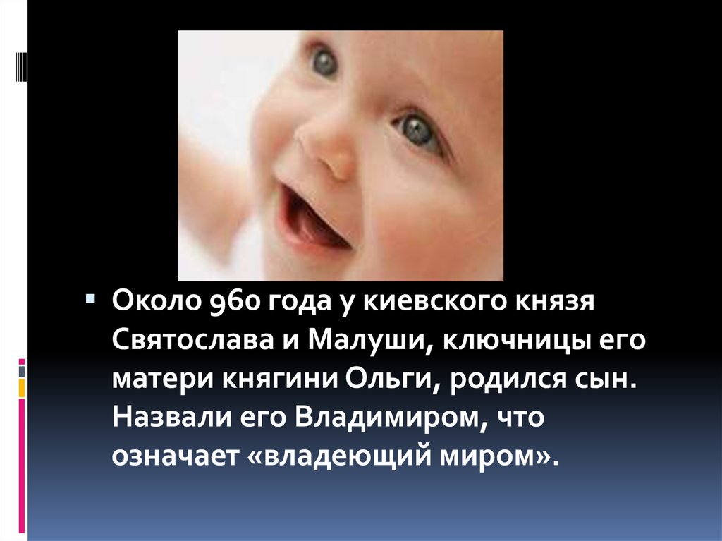 Около 960 года у киевского князяСвятослава и Малуши, ключницы его