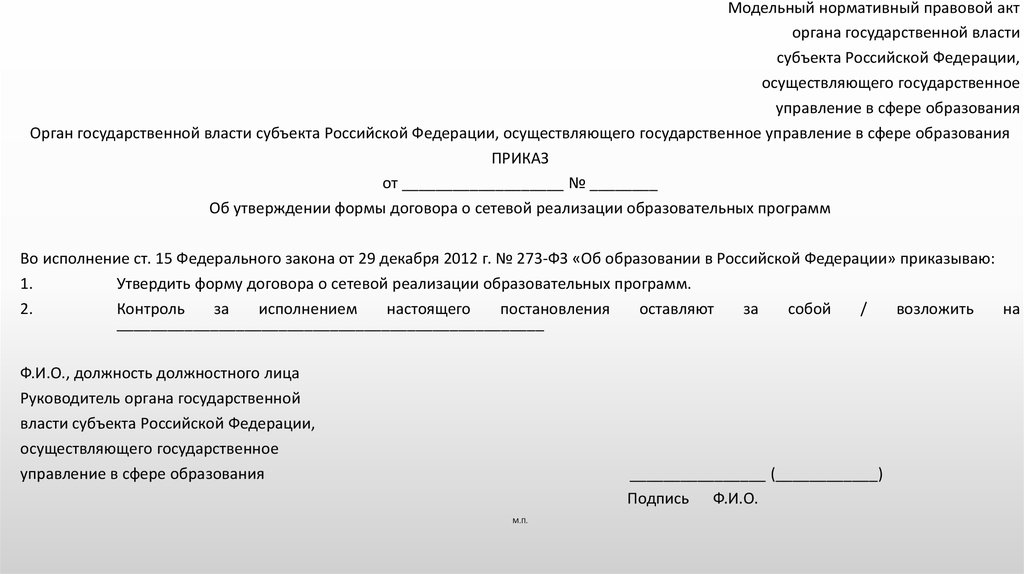 1.2. В рамках сетевой формы реализуются следующие образовательные программы: _______________________.