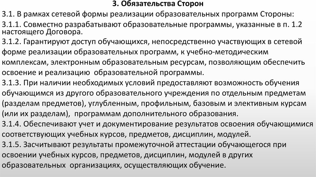 3. Обязательства Сторон3.1. В рамках сетевой формы реализации образовательных программ Стороны: